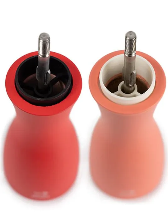 This dynamic Tahiti set of salt and pepper mills will look sensational on your dining table and put the panache into all your culinary creations. The deep brick red hue of the pepper mill is perfectly balanced by the delicately warm glow of the flame red salt mill. Even if you are dazzled and distracted by their colours, this striking contrast makes it easy to identify which is which. The French-made manual wooden salt and pepper mills are equipped with a lifetime-guaranteed steel mechanism and the buttons that adorn each of them disguise a clever way of adjusting the grind setting so you can achieve the texture best suited to your taste and recipe requirements.