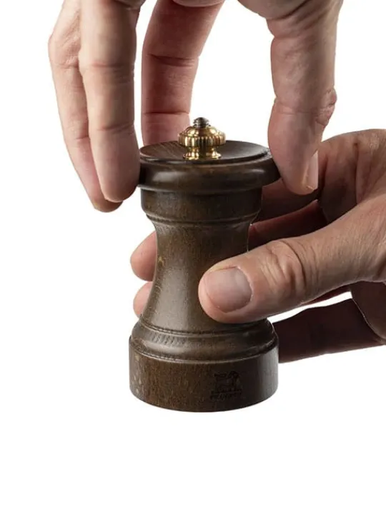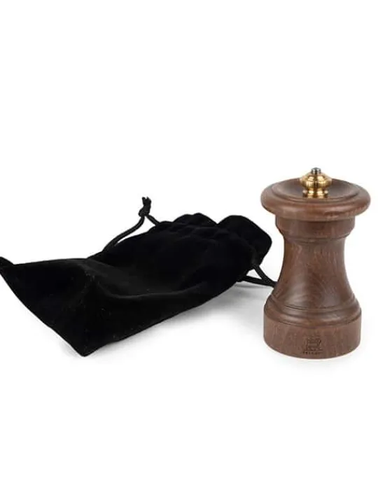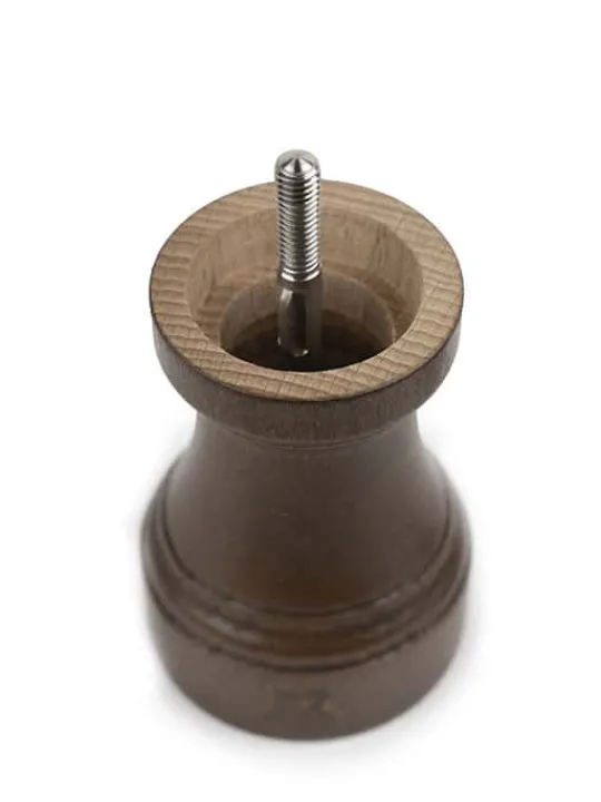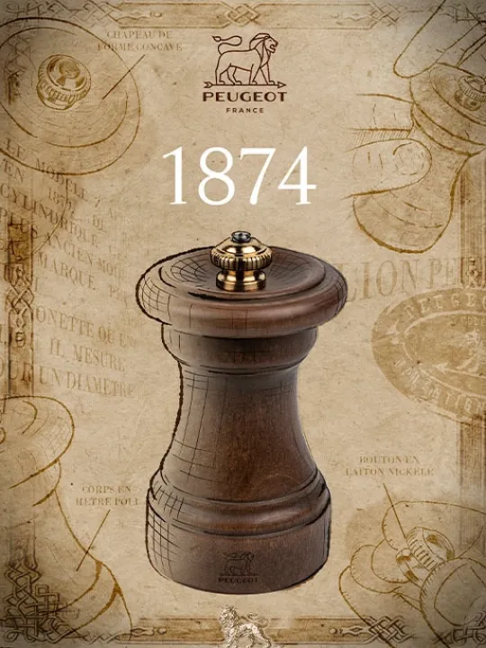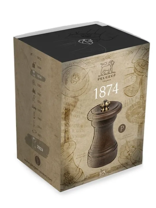 Available in beech with a patinated finish and presented in an elegant box, the 1874 mill is carefully wrapped in a felt bag, offering protection and timeless charm. The final touch of this reissue is added by the jewel-like button, faithfully reproduced from the original. It adds an elegant note to the mill, that has a noteworthy curved shape.