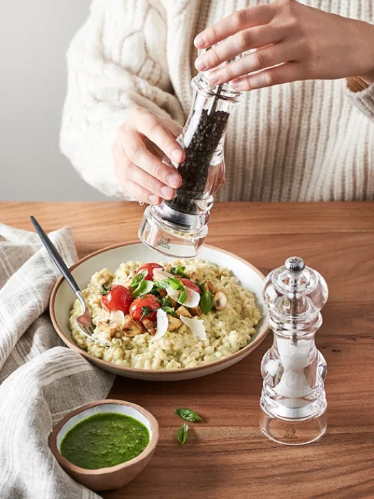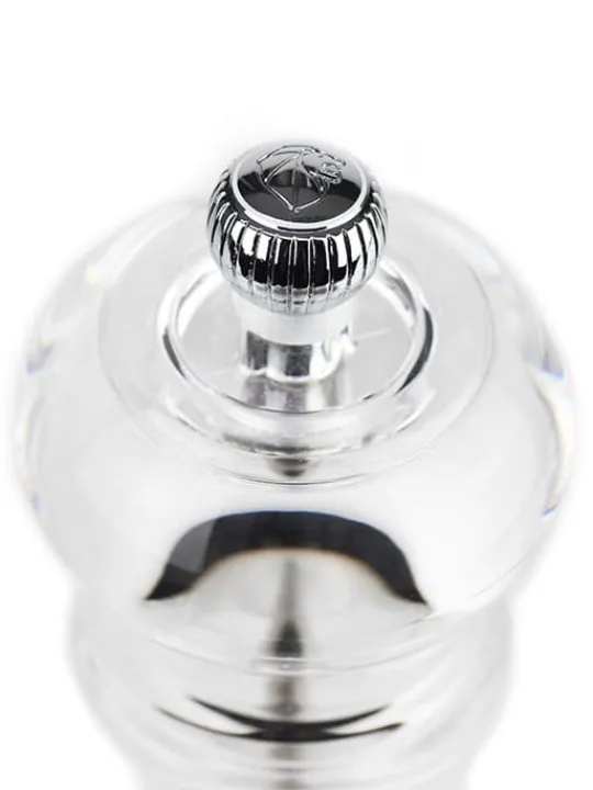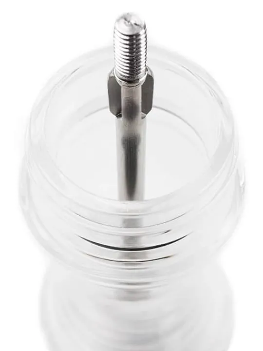 Made entirely of acrylic, the Peugeot Nancy 38 cm salt mill is impressive in its height and in the lightness of its lines. The salt in this crystal showcase reveals its mineral whiteness and invites you to season your food. At the top of the mill, the adjustment knob in a polished chrome finish is used to adjust the fineness of the salt being ground. The most beautiful effect on a beautiful table.